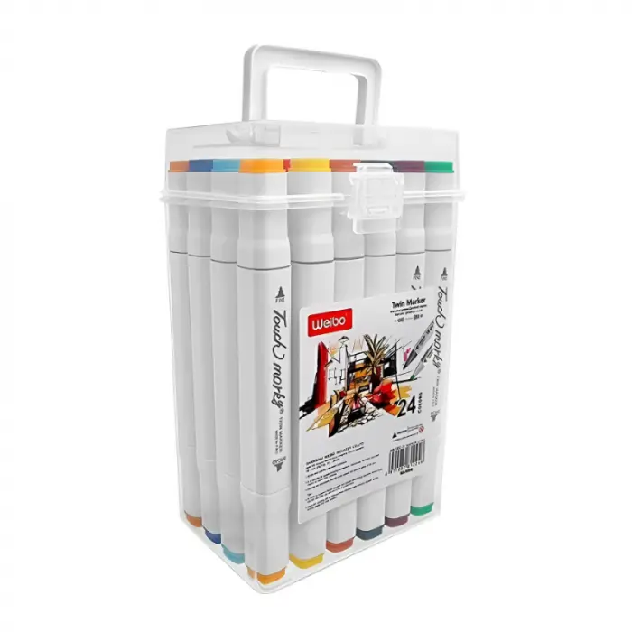 SET DE 24 MARCADORES PROFESIONALES WEIBO TWIN MARKER PUNTA DOBLE