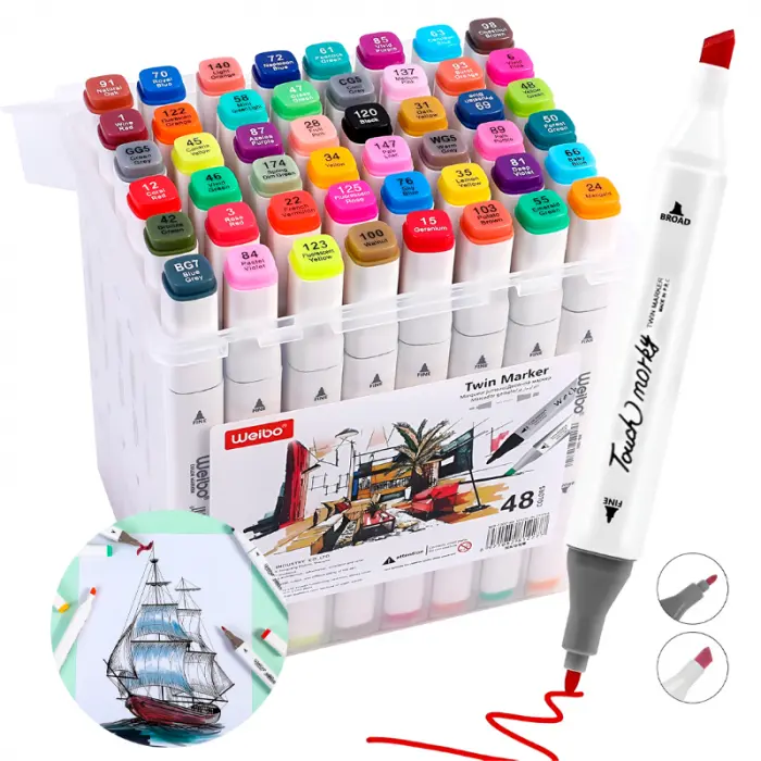 SET DE 48 MARCADORES PROFESIONALES WEIBO TWIN MARKER PUNTA DOBLE